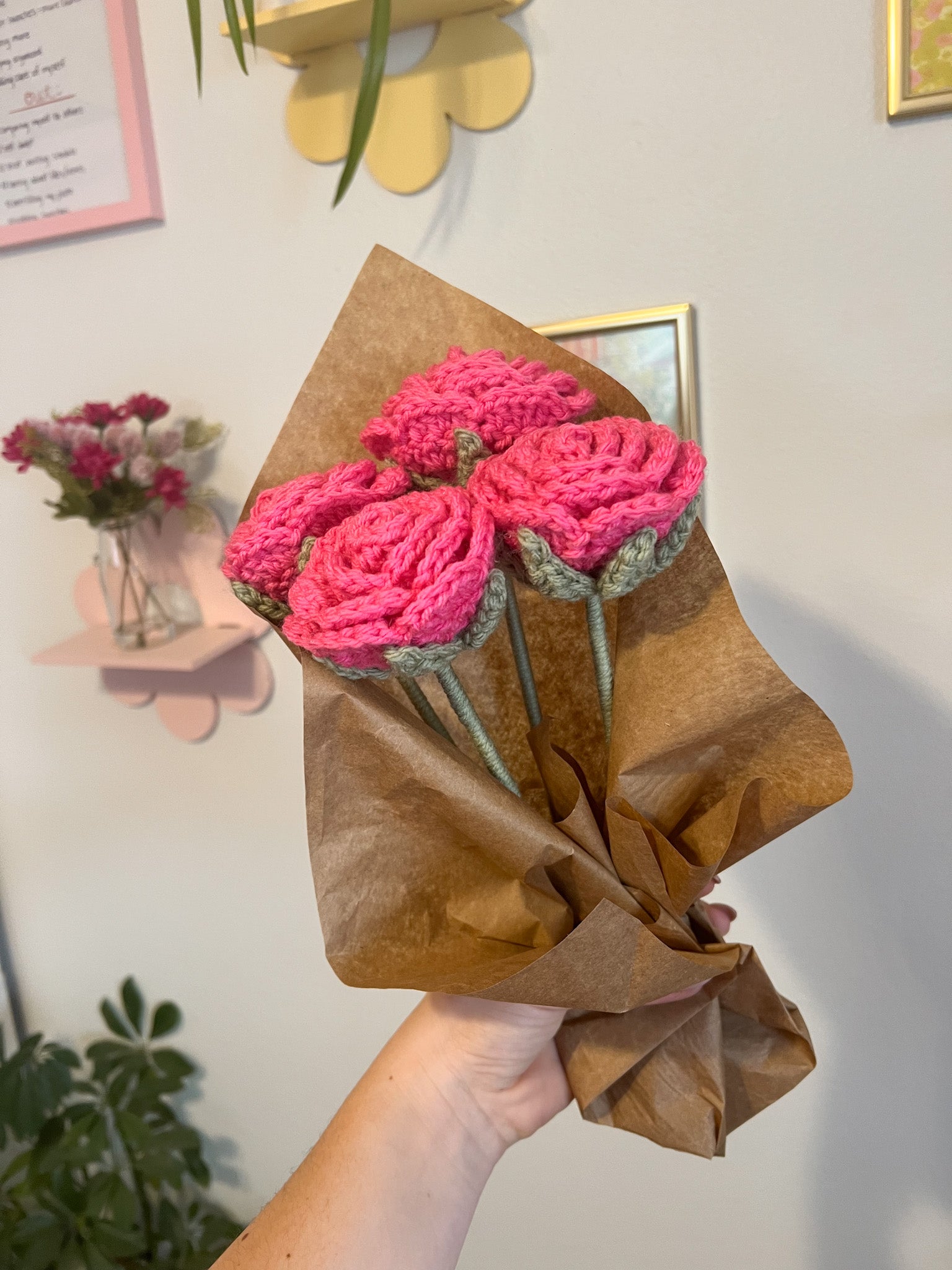 Add a whimsical touch to any space with our Crochet Rose Flower. Made with love and care, these flowers are the perfect way to add a pop of color and a touch of nature to your home. Plus, they never wilt or die, making them a forever blooming addition to your decor!